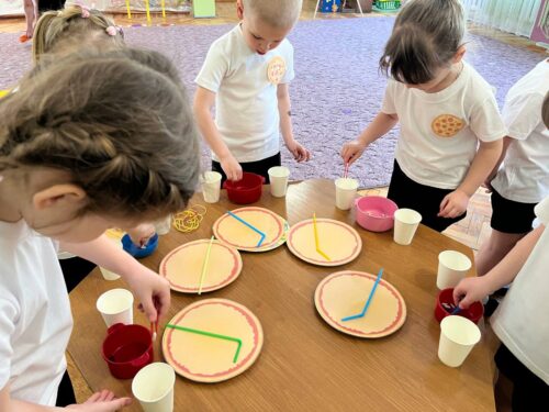 Мета роботи гуртка: розвивати сенсорні еталони шляхом використання паличок Кюїзенера. Навчати математичним діям з паличками, вимірювати за мїх допомогою, розрізняти і називат геометричні фігури, розвивати логічне мислення, пізнавальний інтерес.